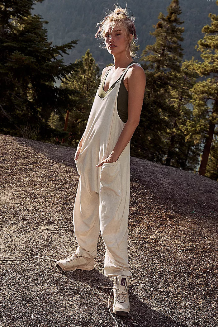 This soft and comfy onesie features a slouchy, relaxed-fitting design with a dropped crotch and convenient side pockets.