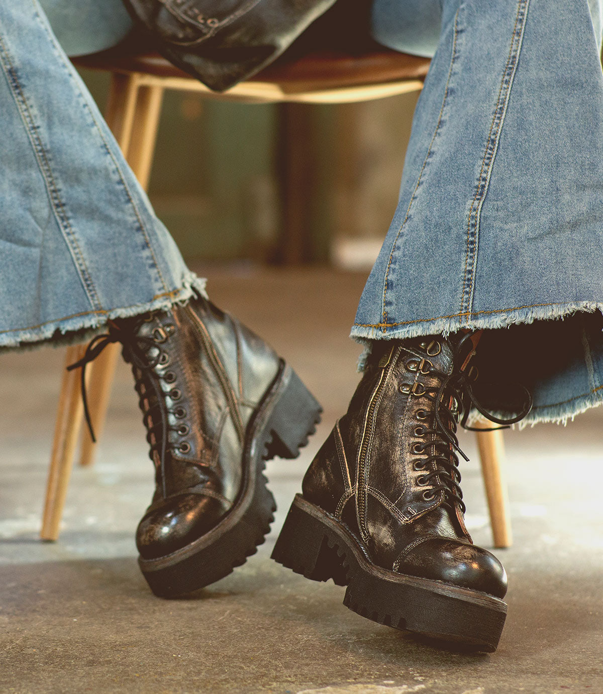 Embrace your inner rebel and venture forth fearlessly with Prudence Hi. An edgy leather combat boot, created with classic features including eyelet lace-up, cap toe, inside zipper and rear pull tab.
